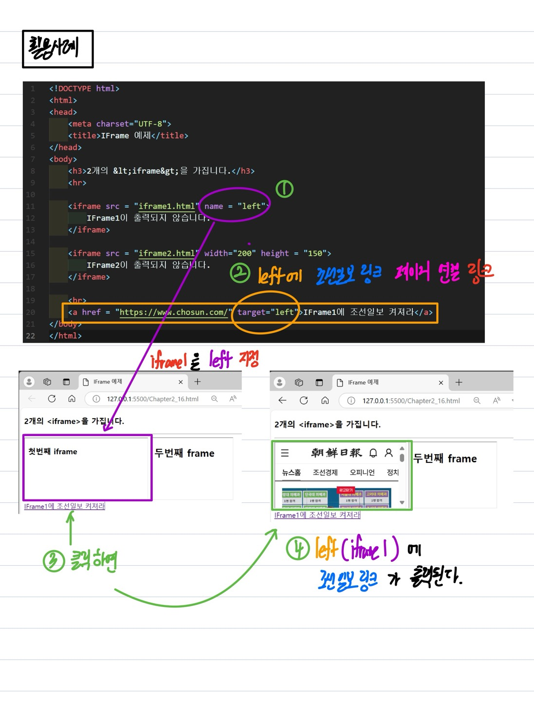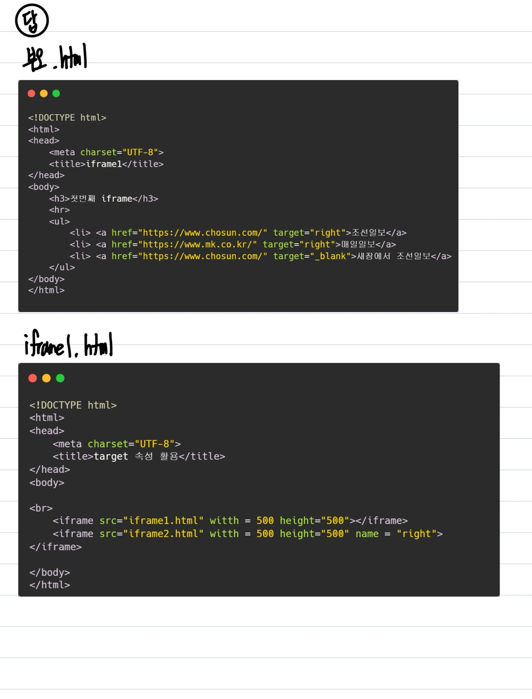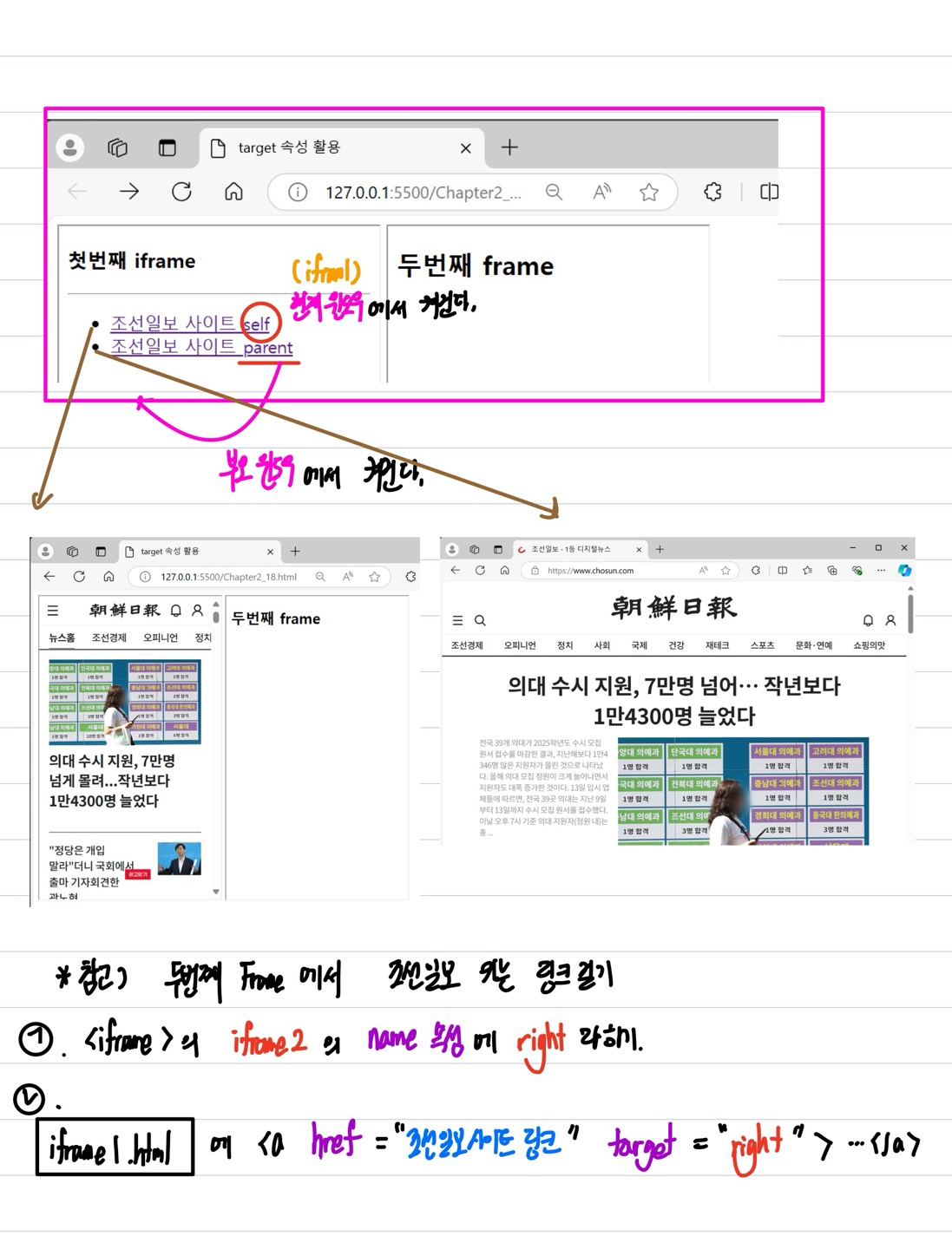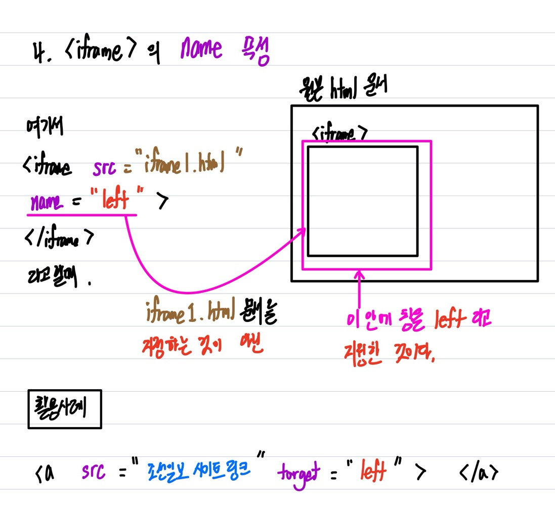 - <a>의 속성 target 와 <iframe>의 속성 name과 상속관계 활용