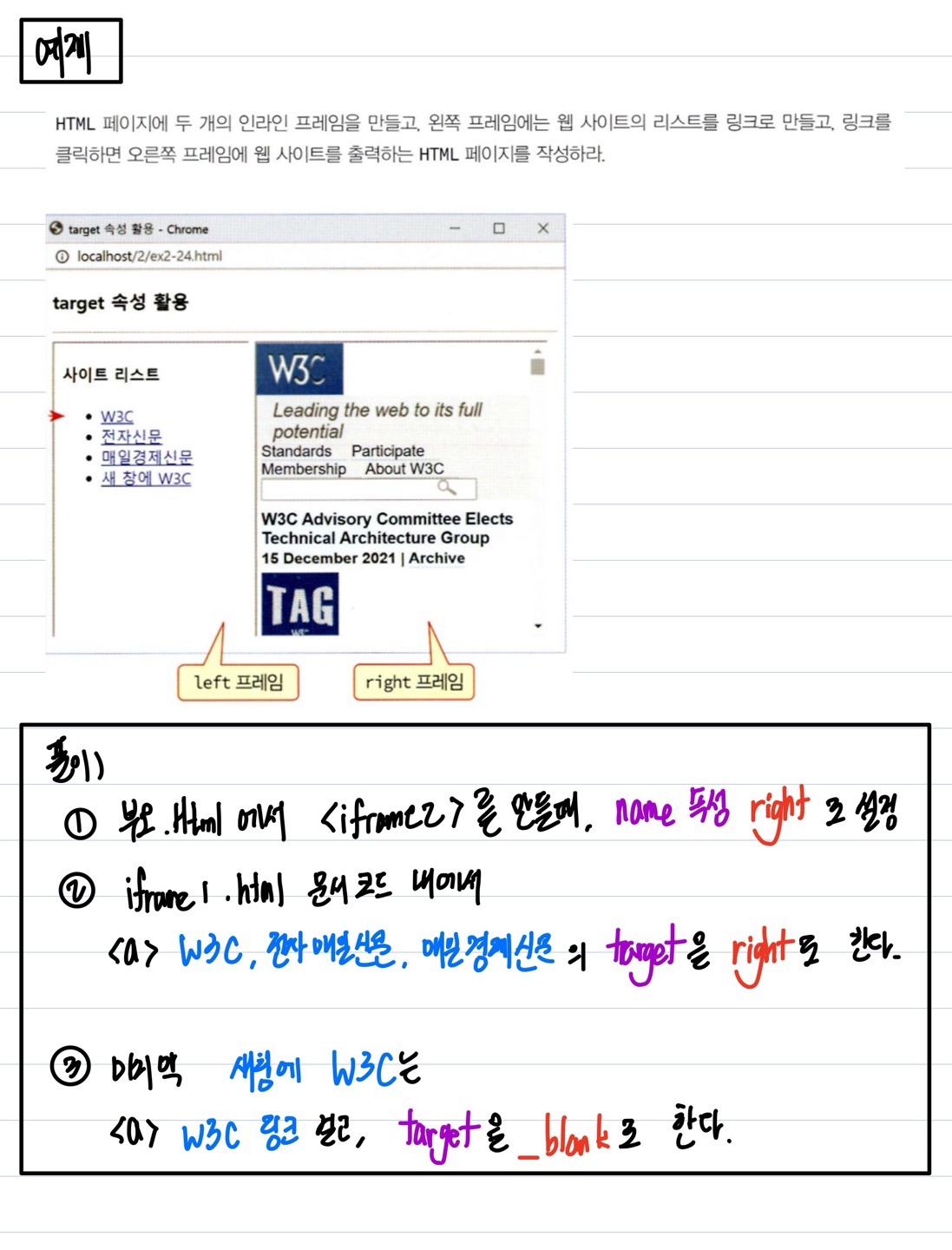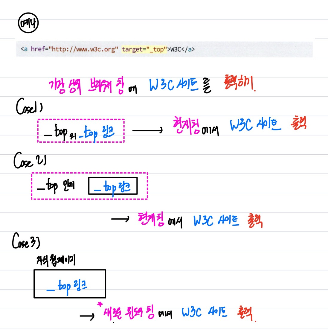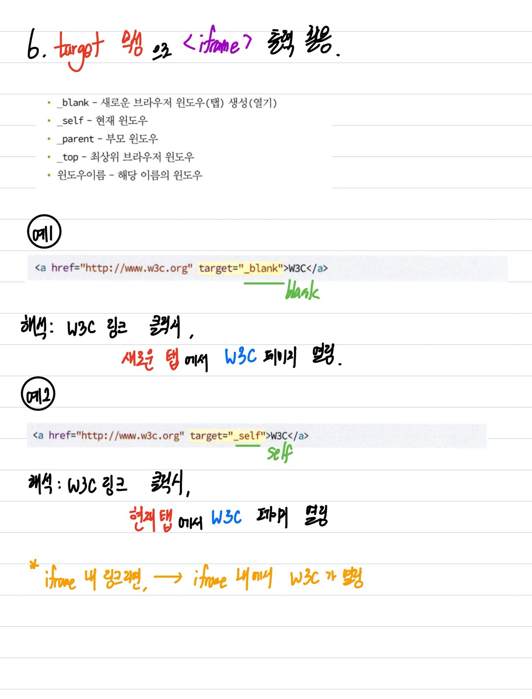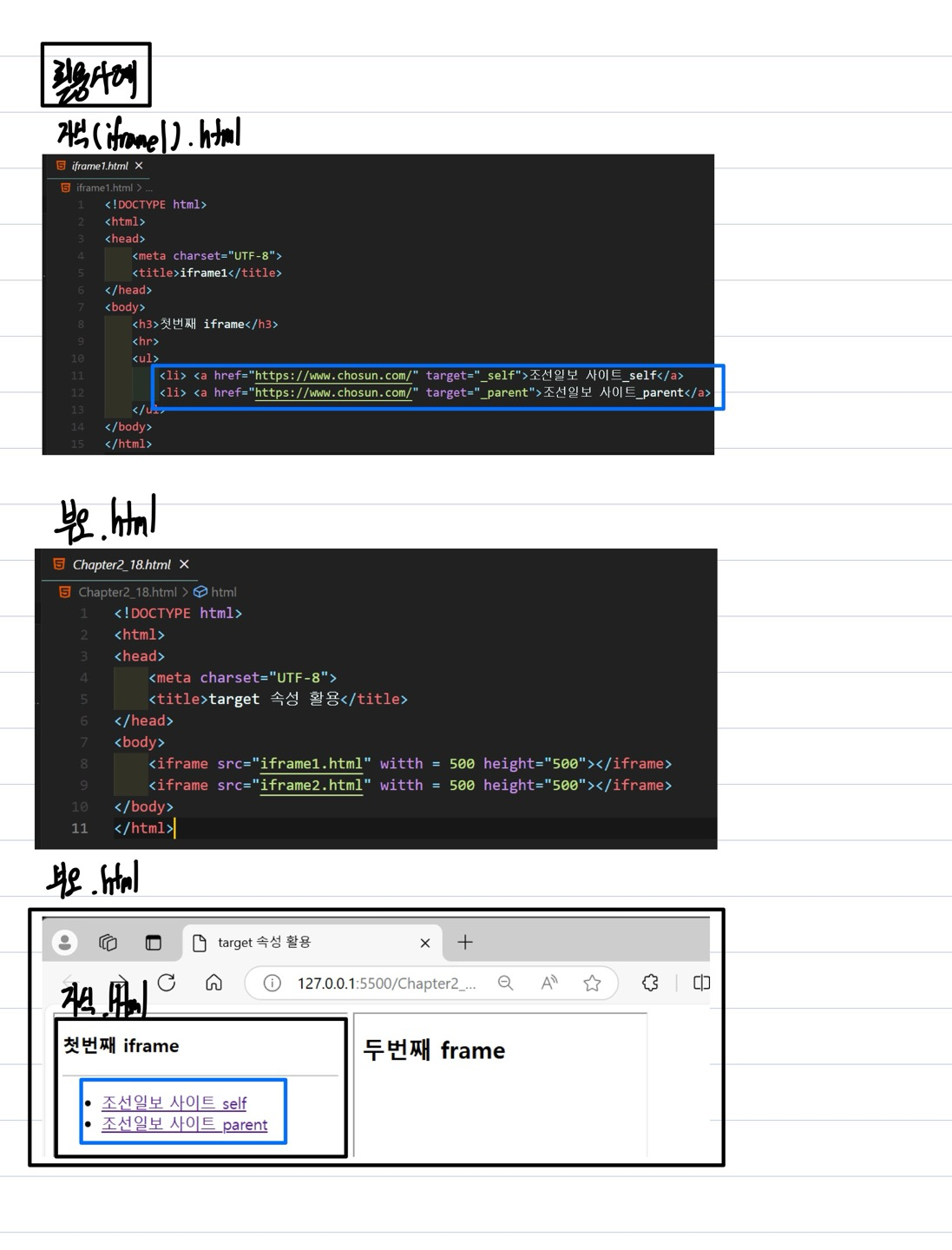 - <a>의 속성 target 와 <iframe>의 속성 name과 상속관계 활용