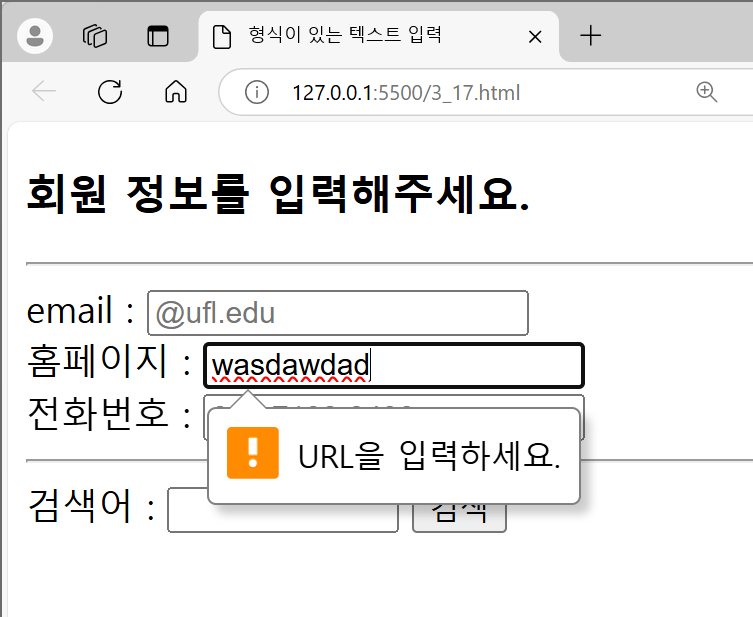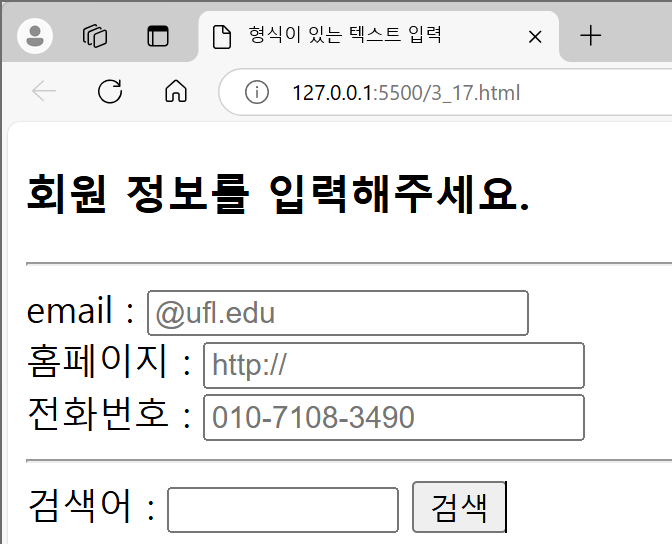 - <input>_기능6 : 형식이 있는 텍스트 창 (email , tel , url)