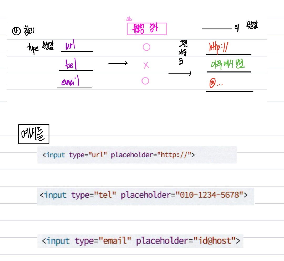 - 그 이외 속성 : placeholder = "각 type에 대한 형식 힌트값"