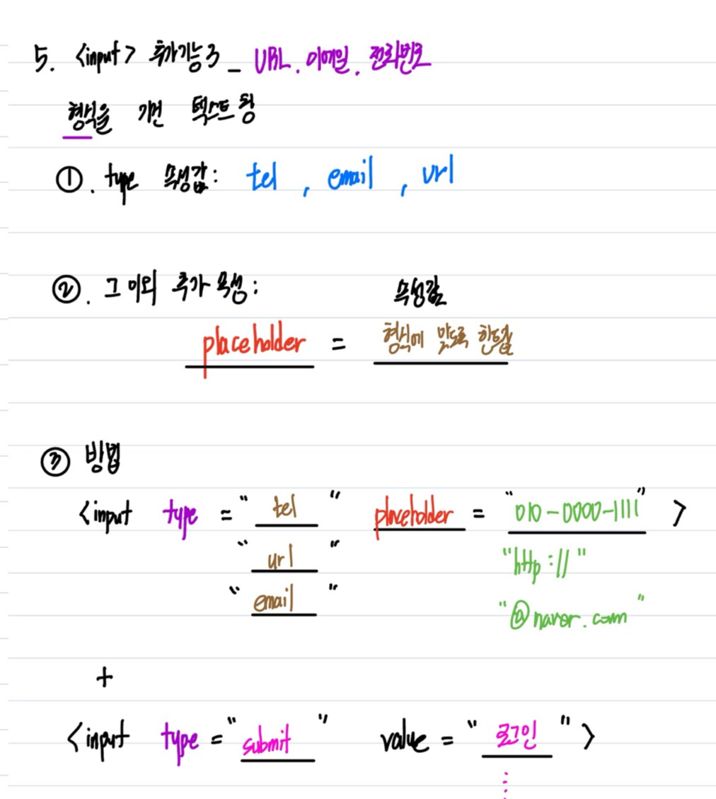 - <input>_기능6 : 형식이 있는 텍스트 창(이메일 , URL 전화번호) type = " email | url | tel "