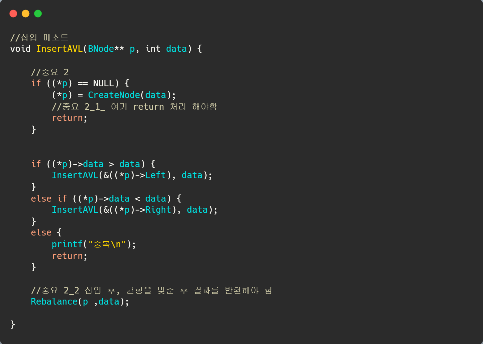 - InsertAVL / Search 메소드 할 떄, else (O)