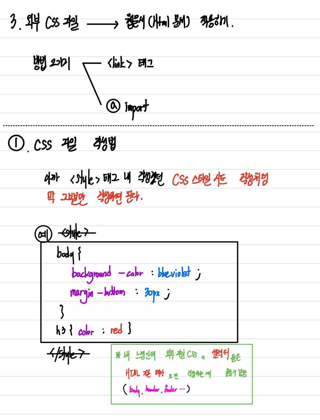 - 외부 CSS 파일에서 Html문서 적용하는 방법 2가지 :