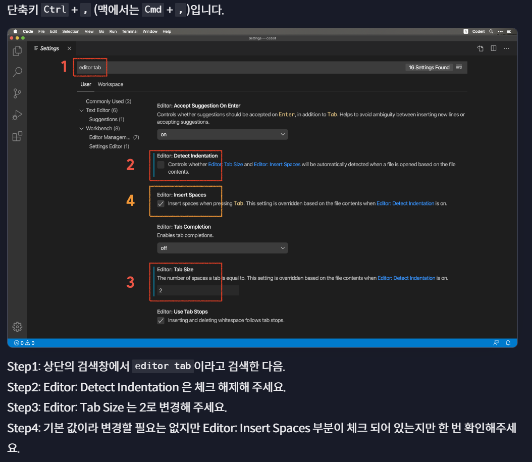 - vscode 에서 간단하게 indentation을 설정하는 방법