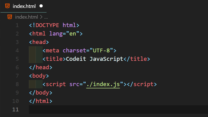 JavaScript는 Html의 기본틀 (<html>태그 , <head>태그 , <body>태그) 사이에는 Tab 2개 정도 나누는 것을 보편적인 룰로 정하고 있음.