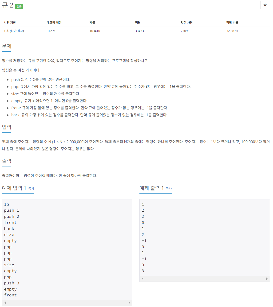 1_ ▲예제입력에서 "push X" 입력과 나머지 명령어 입력 구분해서, cin 처리 정리