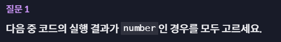 ⓐ. console.log (typeof 1); 과 console.log(typeof 1.3 ) 은 모두 "number"이 출력됨.