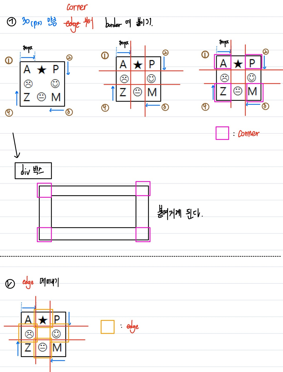 - ★Npx // 이미지 시계방향으로 Npx만큼의 구분선으로 corner 와 edge 생성