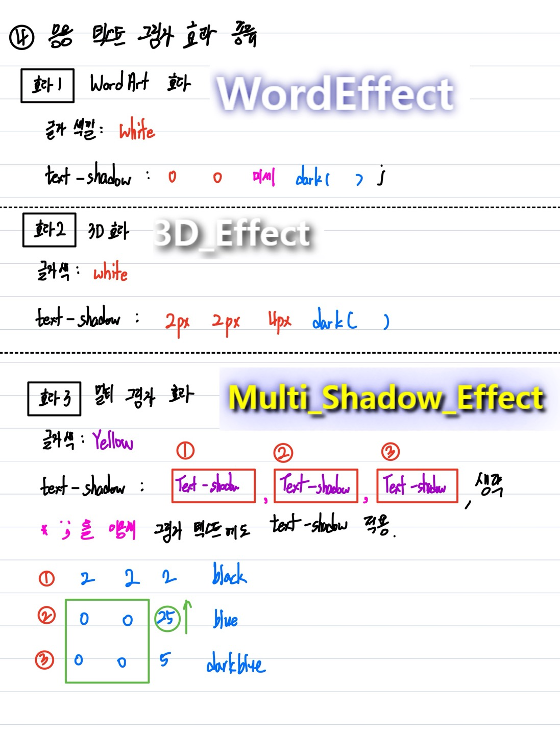 - Text 그림자 효과와 알아두면 좋은 효과set종류 3가지