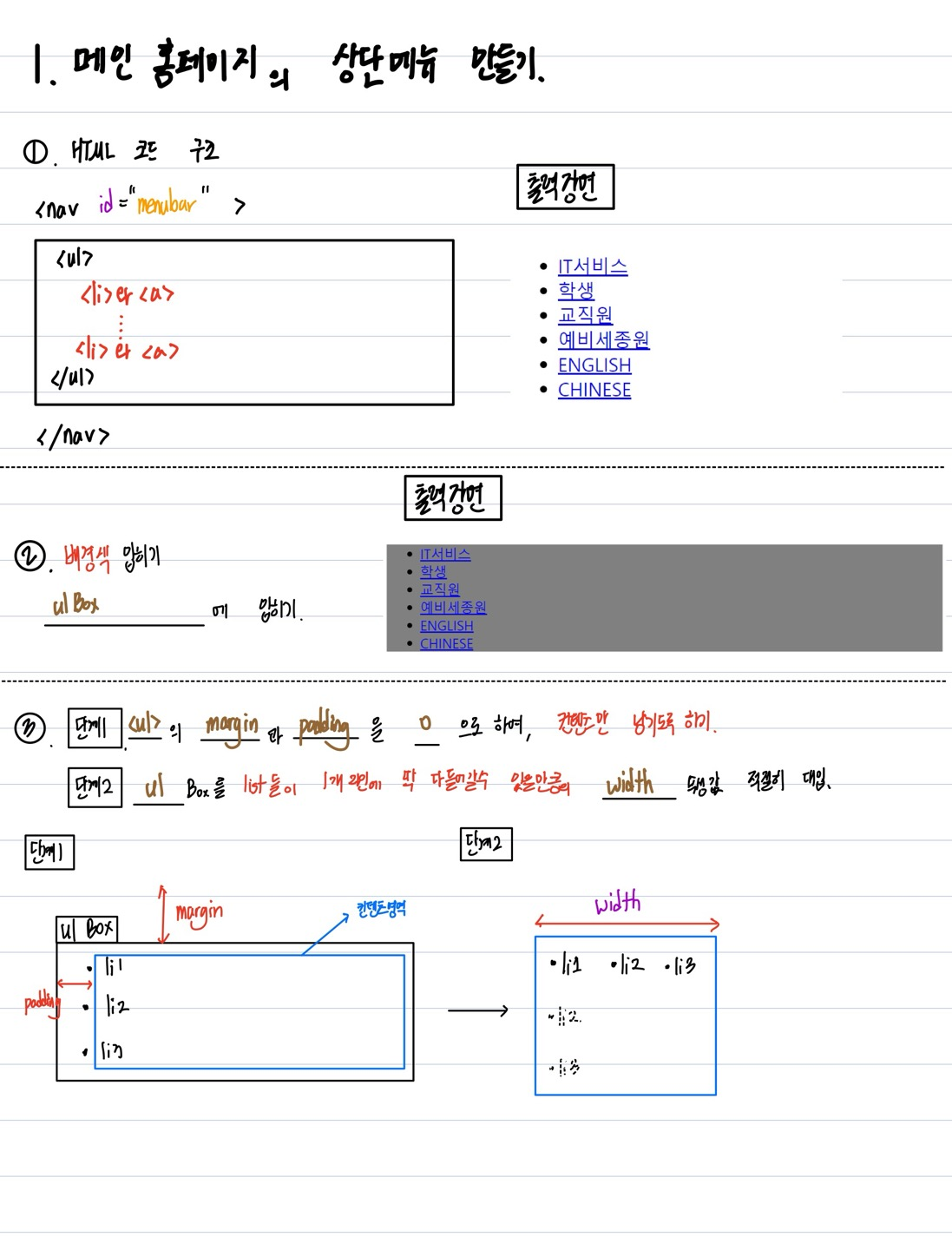 - 메인 홈페이지 상단 메뉴바 만들기