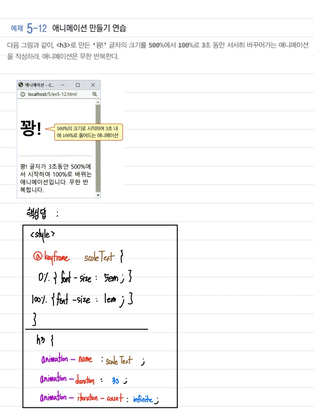 꽝! 글자가 3초동안 500%에서 시작하여 100%로 비뀌는 애니메이션입니다.