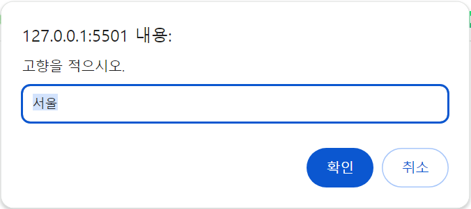 - 매개인자 : "안내 웹폼", "디폴트 입력값"