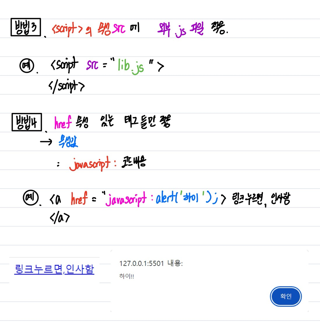 방법2_ <script></script> 태그 내 함수 작성 후, 특정태그의 이벤트속성에 그 함수를 속성값에 대입