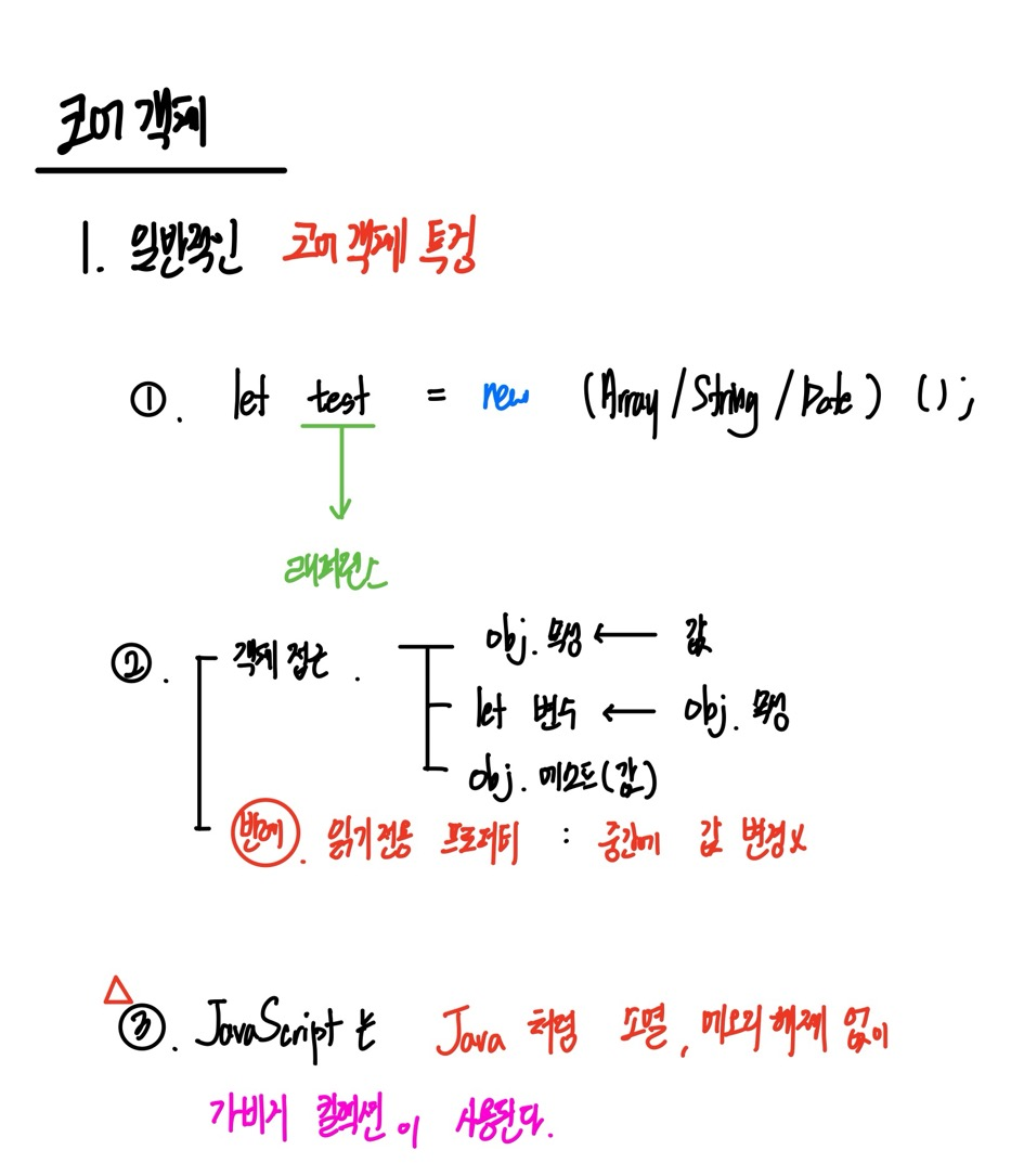 - 종류1 : 코어 객체 //Array, String, Date, Math