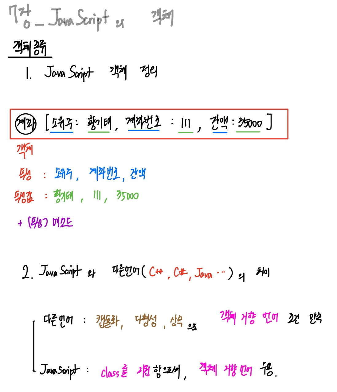 2_ JavaScript의 객체와 다른언어의 객체지향언어 차이 :
