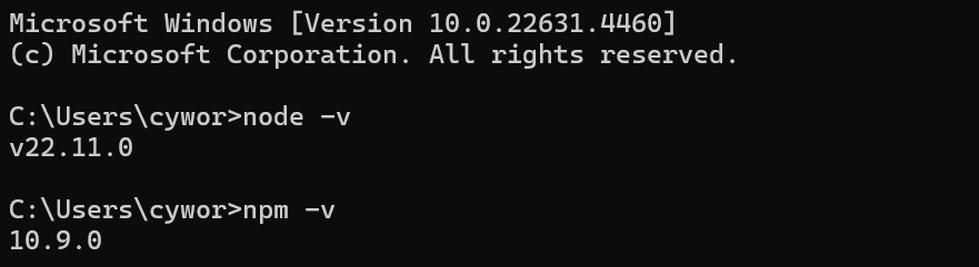 순서4_ cmd(명령프롬프트) 접속 => node.js와 npm 설치여부 확인