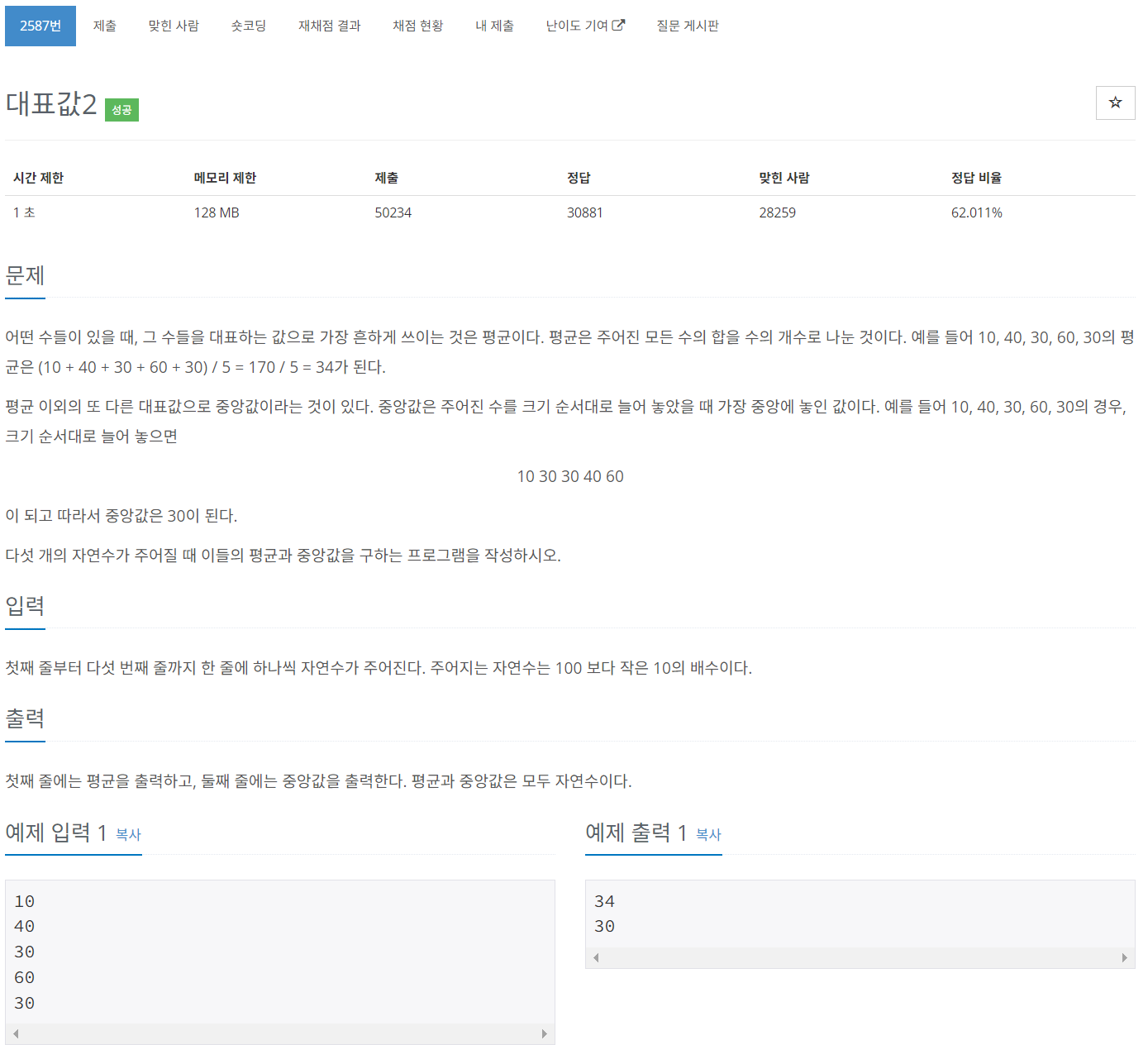 - 중앙값 ≠ 점수의 등수 => 따라서, 등수 매기는 문제를 찾아보아서 풀어보기 (BOJ_1205번)[https://www.acmicpc.net/problem/1205]