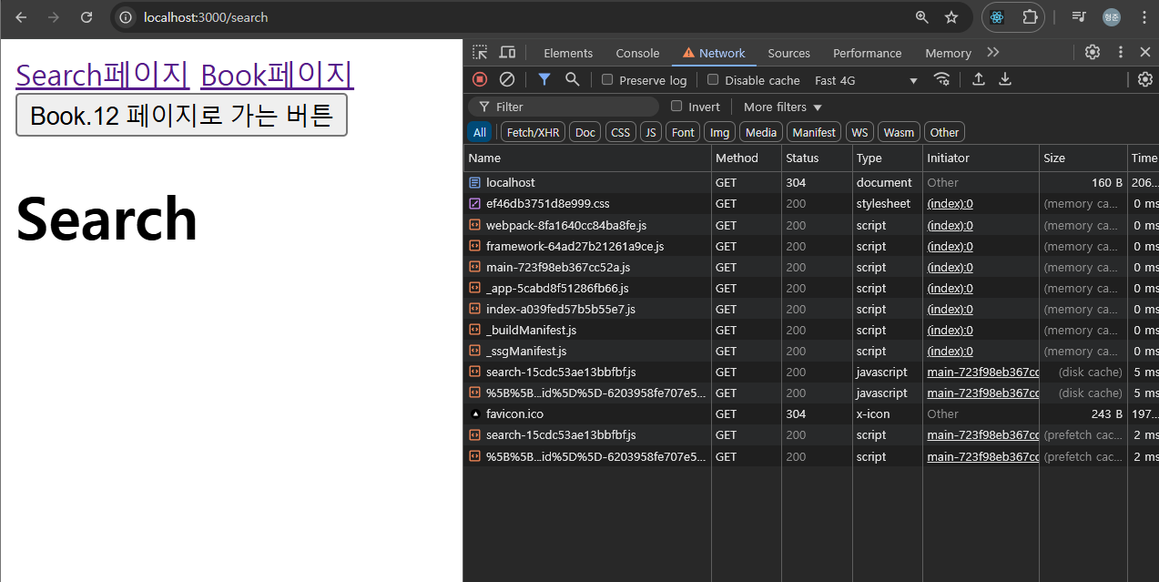 ※ 링크 타고, Search 페이지로 이동 후에는 아무 요청이 안생기는 것을 볼 수 있다.