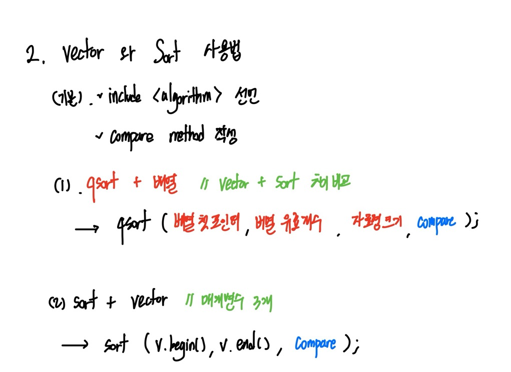 ★ Vector(or 다른 선형 자료구조)와 Sort() 사용방법 :