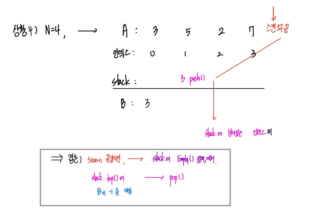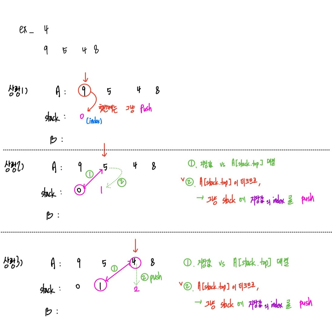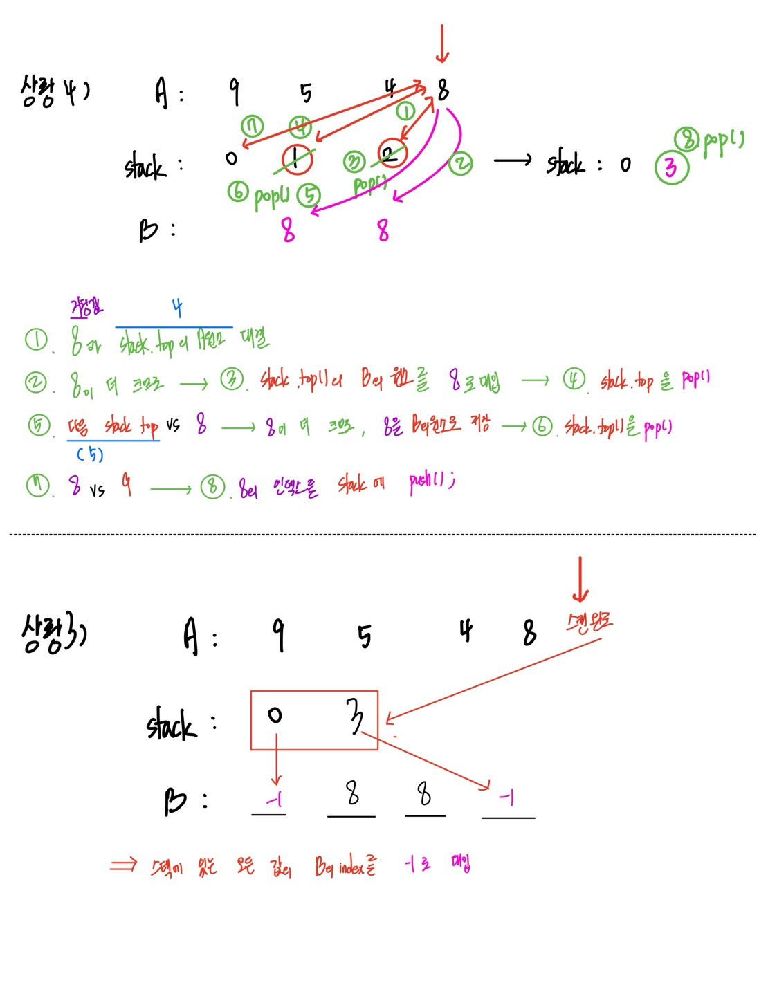 // 현재 인덱스의 값 A[i]가 스택의 top의 값보다 큰 경우, 오큰수를 찾은 것이므로 업데이트