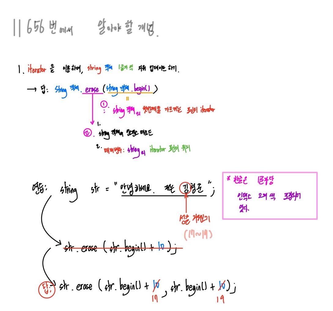 ⓑ. 매개변수 : iterator의 String 객체의 포인터 : (or 객체 포인터 2개를 넣으면, 범위만큼 조작 가능)