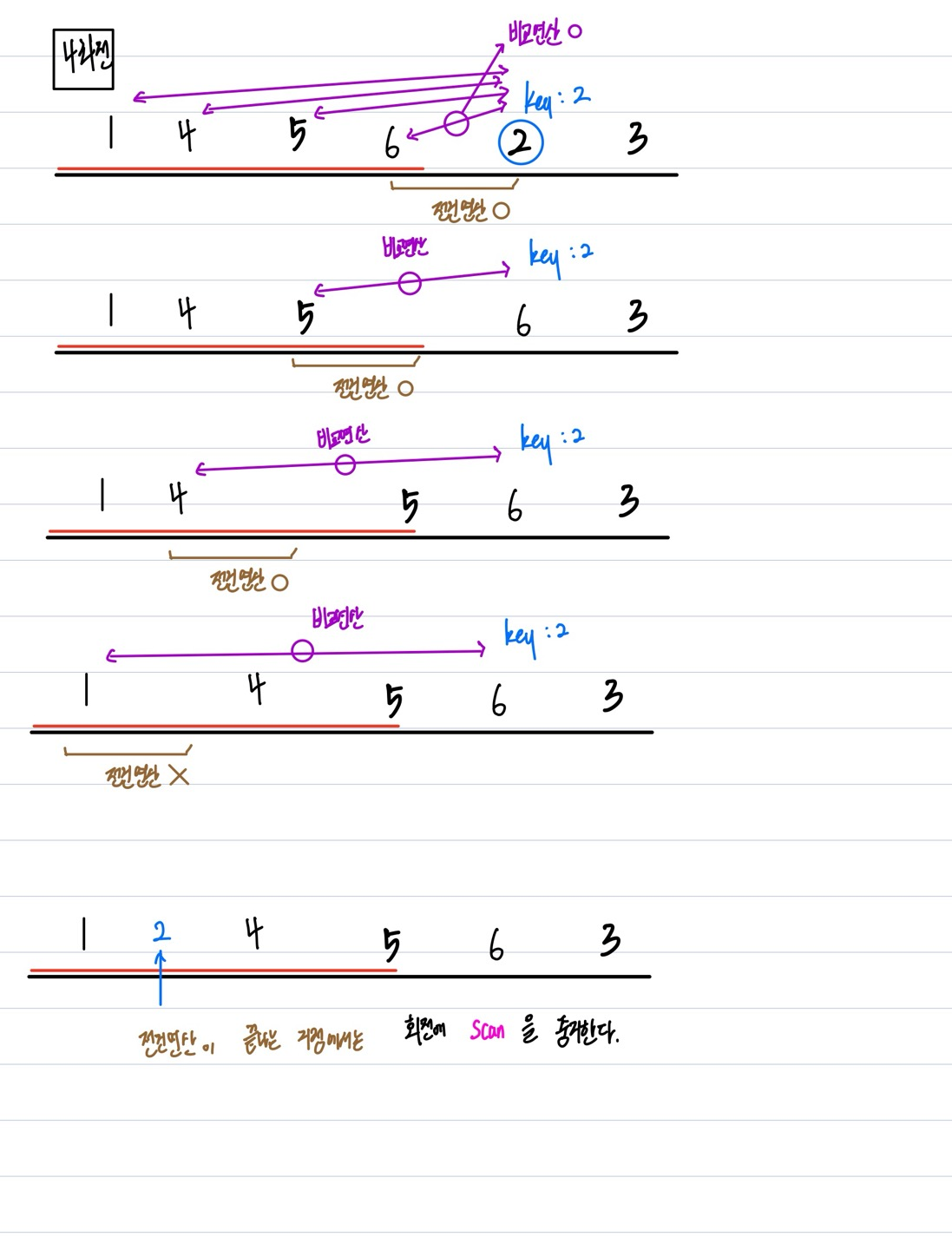 ##삽입정렬 출력 장면(SWAP연산==전진연산)