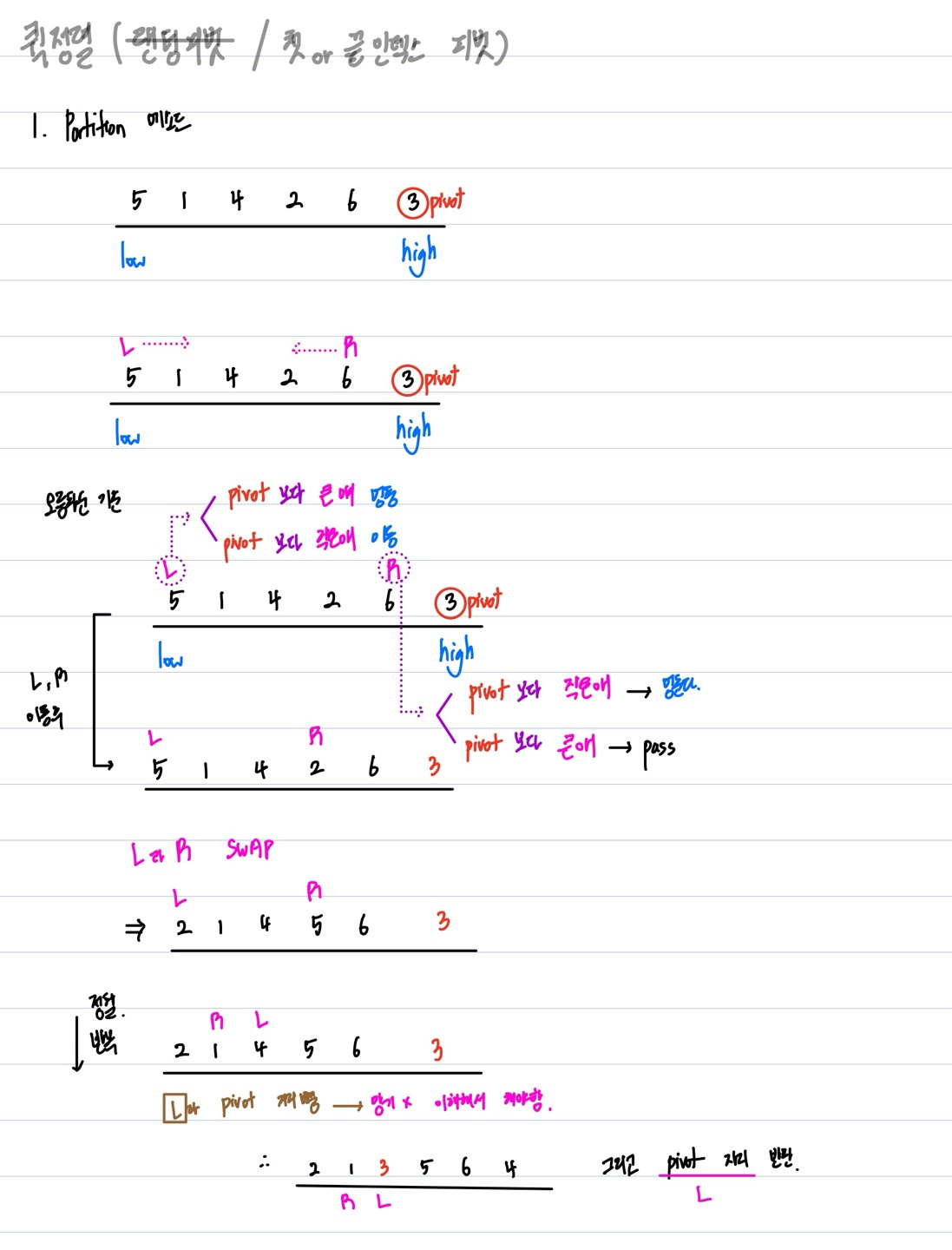 부연설명 : 퀵정렬은 피벗에 위치에 따라 모든 연산횟수가 달라진다. 여기서 작성할 피벗은 첫,끝인덱스 기준 퀵정렬이다.