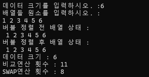 printf("SWAP연산 횟수 : %d\n", S_cnt);