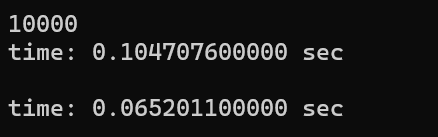 - 여러 번 테스트를 실행해보면, 작은 차이가 있을 수 있으나 둘 다 유사한 실행 시간을 보일 것으로 예상됩니다.